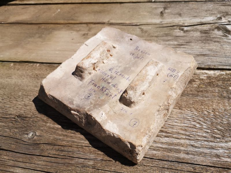 Eine polychrom handbemalte Qajar Fliese, sehr selten und in prachtvollen Farben; Kadscharen-Dynastie (قاجاریان, Qāǧārīyān, Qajar); Persien 18. - 19. Jahrhundert; quadratische Form, Teil eines Rokoko-Rahmens inmitten blühender Pflanzen und Blumenranken, wunderschöne strahlende Farben und für das Alter ein sehr guter Erhaltungszustand; auf der Rückseite zwei Zapfen und handschriftlicher Vermerk (siehe Fotos); tolles Sammlerstück – ein muss für jeden Sammler islamischer Antiquitäten; Maße: ca. 19,2 x 19,2 cm; dem Alter entsprechende Gebrauchsspuren, Beschädigungen und Fehlstellen (siehe Fotos); Provenienz: aus der Sammlung des Frankfurter Ethnologica-Händlers „Thomas Morbe“ - Frankfurt am Main (Deutschland)