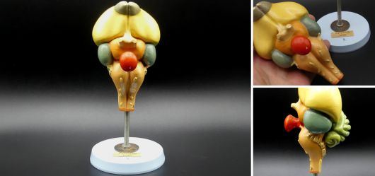 Altes und seltenes Lehrmittel (Schaumodell, Anatomisches Modell) aus der Zieglerschen Serie nach Prof. Dr. Wiedersheim „Gehirnmodelle von Wirbeltieren“; original um 1960; Nr. 3 – Columba Taube; Maße mit Stand: 18 cm; Zustand: leichte Absplitterung im unteren Bereich (siehe Fotos), Stand gebrochen aber fixiert; Deutsches Hygienemuseum Dresden - DDR; farbig gefasst, vermutlich aus Gips; hellblauer runder Stand; dem Alter entsprechende Gebrauchsspuren;
