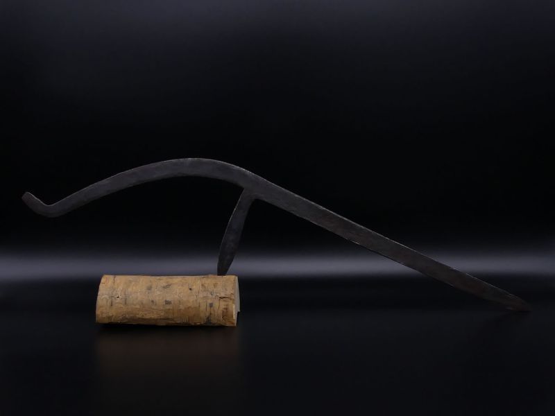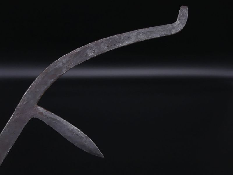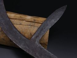 Dieses authentische afrikanische Wurfeisen vom Typ Ngalio stammt von dem Volk der Sara aus dem südlichen Tschad und wird auf die erste Hälfte des 20. Jahrhunderts datiert. Der südliche Tschad gilt in der Ethnografie oft als die Wiege des afrikanischen Wurfmessers wobei das Ngalio eine der archetypischen Formen dieser Region darstellt. Das hier vorliegende Exemplar zeichnet sich durch seine rein funktionale F-Form aus handgeschmiedetem Eisen aus und verzichtet bewusst auf Ziselierungen oder dekorative Verzierungen was seinen Charakter als echte Gebrauchs- und Jagdwaffe unterstreicht.