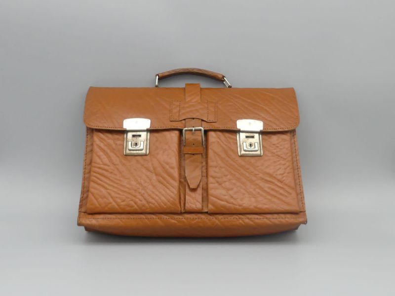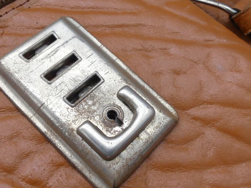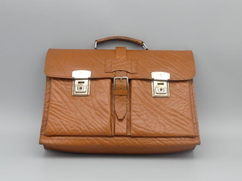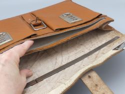 Das Design folgt der klassischen Ranzenform mit einem stabilen Handgriff was die Tasche heute zu einem gesuchten Accessoire für den modernen Alltag oder das Büro im Vintage Stil macht. Die massiven Metallschnallen garantieren auch heute noch eine einwandfreie Funktion. Die Tasche hat zwei kleine und zwei große Fächer, ein Fach mit einem Reißverschluss verschließbar. Das Leder außen ist in einem guten Zustand, stabil und Steiff; die Seitenwände der Innentaschen sind etwas brüchig. Die Tasche wurde nur selten benutzt. Mit ihrem zeitlosen Look und der hohen handwerklichen Qualität ist diese Tasche ein ideales Objekt für Liebhaber nachhaltiger Vintage Mode, die ein funktionales Stück mit echter Seele suchen. Schlüssel fehlt; dem Alter entsprechende Gebrauchsspuren; Maße: 28 x 41 cm