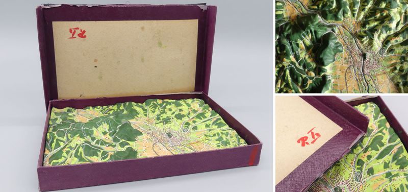 Extrem seltenes Handrelief (Geomorphologische Reliefkarte) aus der Serie "Heimat" Nr. 10. Graz-Umgebung (Spezialkarte 1:75.000) vom Verlag der Kartographischen Anstalt G. Freytag & Berndt A.G., Wien um 1925; im Originalkarton – Der Kartondeckel hat sich gelöst; eine zu Lehrzwecken hergestellte Relief-Landkarte aus Gips; die Ausführung stammt von Franz Bibiza Spezialkarte 1:75.000; Diese Lehrmittel nannte man früher auch „stummes Relief“; zu sehen ist die Stadt Graz und Umgebung, die Reliefkarte ist farbig handbemalt - detaillierte Lupenmalerei mit allen wichtigen Legenden (Häuser, Wälder, Felder, Straßen, Zugverbindungen, Flüsse, uvm.) aus der Zeit der 1920er Jahre; ein wertvolles österreichisches Zeitdokument mit Museumsqualität; in originaler Schachtel, das Relief im guten Zustand; das Beiblatt und die Karte im Deckel fehlen, dem Alter entsprechende Gebrauchsspuren; Maße: ca. 17 x 24,5 cm