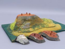 Eine perfekte Bereicherung für jede Wunderkammer oder ein ideales Geschenk für Geografie- und Naturliebhaber. Es bietet einen seltenen Einblick in die Entwicklung wissenschaftlicher Anschauungsobjekte; Maße: 23,5 x 38 x 15 cm; dem Alter entsprechenden Gebrauchsspuren.