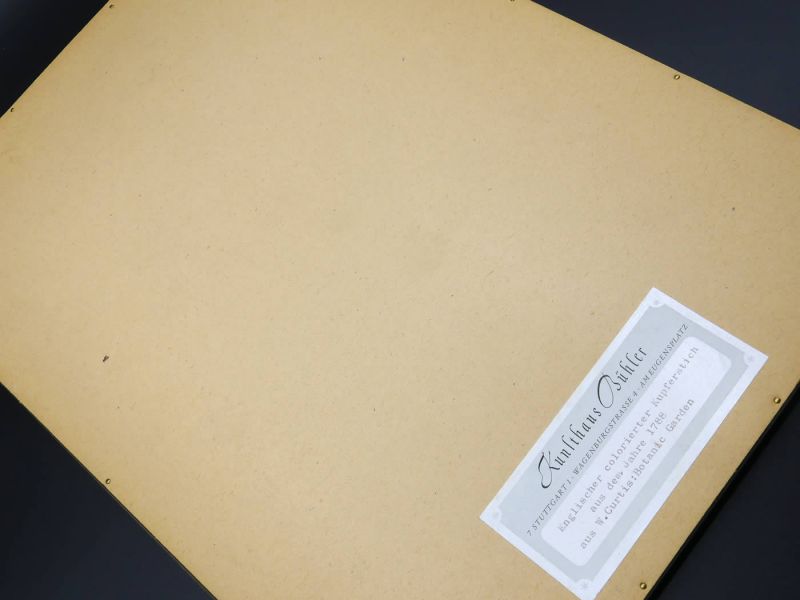 Botanische Kupfertafel handkoloriert, 1788 - mit Passepartout und gerahmt; 1x Buchblatt: „Moosrose - Rosa centifolia muscosa“ – aus dem Buch „Die Botanical Magazine, Lambeth Marsh ; London 1788; von William Curtis; original handkolorierter Kupferstich; Einige Stockflecken; William Curtis (1746 - 1799) war ein berühmter englischer Botaniker, Entomologe und ausgebildeter Apotheker aus Alton Hampshire; 1779 gründete er seinen eigenen London Botanic Garden in Lambeth, 1787 veröffentlichte er „The Botanical Magazine“, ein Werk, das auch handkolorierte Tafeln von Künstlern wie James Sowerby und Sydenham Edwards enthielt; dem Alter entsprechende Gebrauchsspuren; Maße Rahmen: ca. 26,4 x 35.8 cm