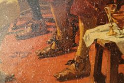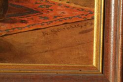 Nettes Dekostück - Druck auf Pressspanplatte; Drei Männer sitzen in der Stube