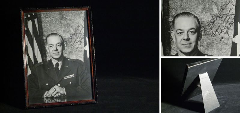 Sehr seltene Fotografie von Major General William Henry Nutter der US-Army; mit persönlicher Widmung, datiert (1955) und signiert; das Foto stammt aus Österreich wo General William Nutter in den 50er Jahren stationiert war; das Bild ist gerahmt und im guten aber gebrauchten Zustand; Maße Rahmen: 18 x 24,5 cm