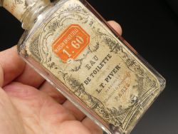 Dies ist ein außergewöhnliches Zeugnis französischer Parfümeriegeschichte und ein seltenes Fundstück für jeden anspruchsvollen Sammler. Eine authentische über ein Jahrhundert alte Flasche des ikonischen Duftes Eau de Toilette à la Reine des Fleurs der legendären Marke L.T. Piver. Der Duft wurde bereits 1774 kreiert und gilt als einer der ersten Erfolge des Hauses Piver welches Königin Marie-Antoinette zu seinen Kundinnen zählte.