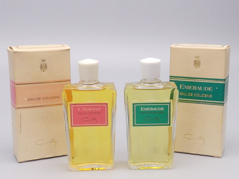 1x Emeraude – Eau de Cologne, 55 ml, Version 1950er, original versiegelt; 1x L’Aimant – Eau de Cologne, 55 ml, Version 1950er, original versiegelt; 1x Imprévu – Eau de Toilette, ca. 40 ml, voll (1968); 1x Muguet – Eau de Cologne, 12 ml, voll (1940–1950) und 2 Miniaturen – Imprévu (1968) & Masumi (1967)