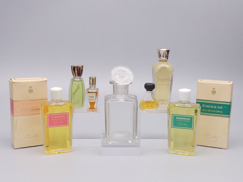 Ein außergewöhnliches Sammlerlos, das den zeitlosen Stil von Coty in unterschiedlichen Epochen widerspiegelt und mit dem Lalique-Stopper ein Stück Parfumkunst von musealem Wert enthält.