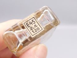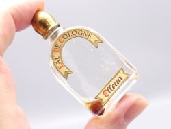 Zusätzlich beinhaltet das Set zwei Flakons Ellocar Eau de Cologne – eine 50 ml und eine ca. 8 ml Version –, beide original verschlossen. Die große ist etwa zu einem Drittel gefüllt, bei der kleinen ist nur noch ein Duftrest enthalten. Das Design beider Flakons spiegelt den stilprägenden Mid-Century Look wider, der an klare Formen der Nachkriegszeit erinnert.