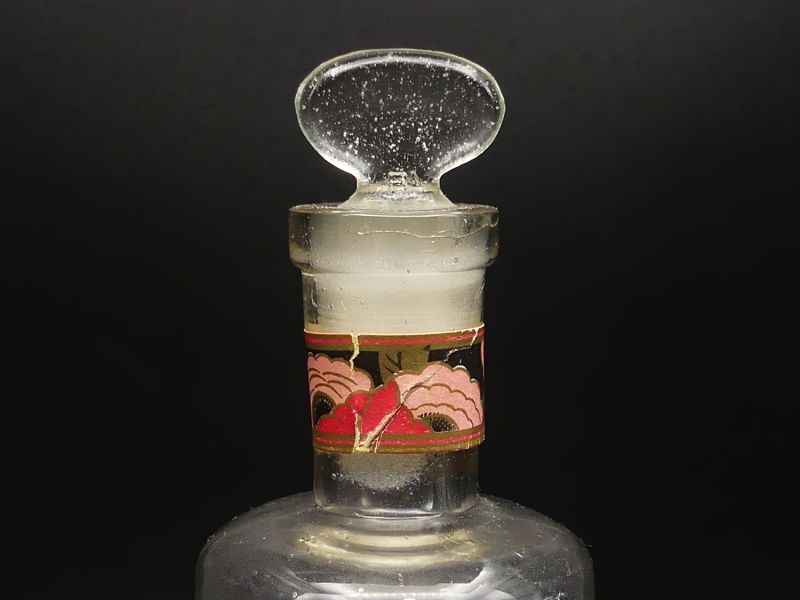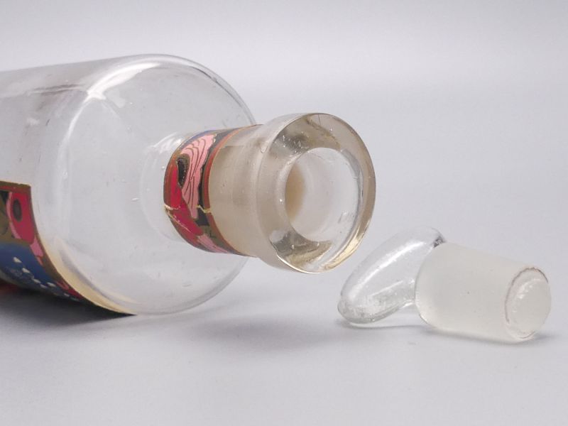 Der Flakon ist etwa 13,5 cm hoch und besitzt seinen originalen Glasstopfen. Sein auffälliges, mehrfarbiges Etikett mit stilisierten Alpenblumen ist ein exzellentes Beispiel für den französischen Art-Déco-Stil in seiner Blütezeit. Die Registrierung der Marke erfolgte 1925 und 1928 in Frankreich, was das Alter des Flakons auf ca. 1928 bis 1935 datiert. Da Les Parfums de Malyne kein großes überliefertes Parfümhaus ist, gilt dieser Flakon als äußerst selten und ist ein bedeutendes Sammlerstück das die Vielfalt der französischen Parfümindustrie der Zwischenkriegszeit dokumentiert.