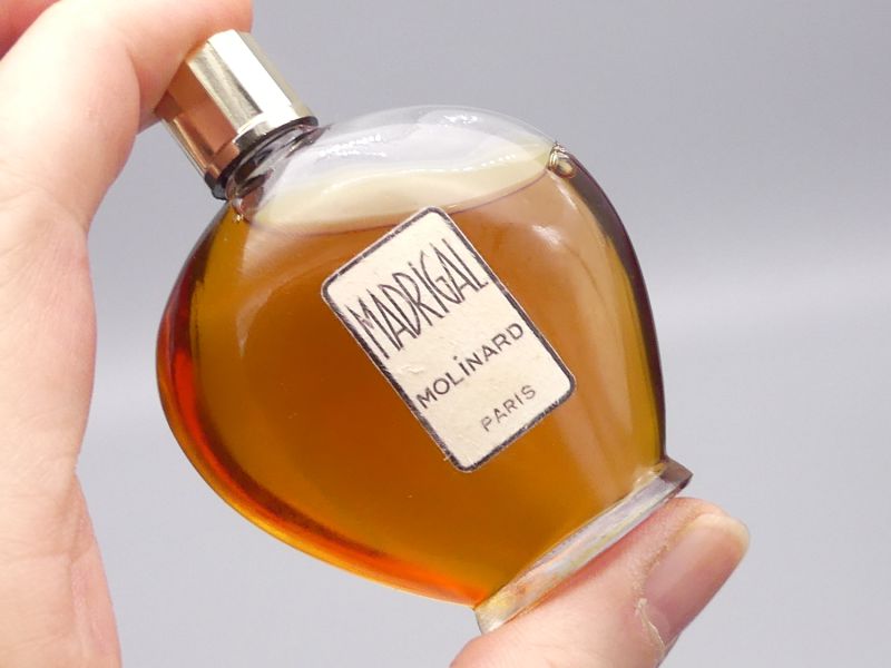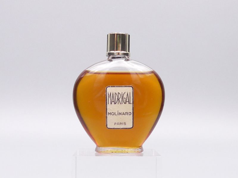 Ein Duftklassiker der Extraklasse: Wir präsentieren einen wunderschönen, original versiegelten Vintage-Flakon von Molinard mit dem Duft "Madrigal". Molinard "Madrigal" ist ein ein poetisches Parfum mit aromatischer, holziger und orientalischer Ausrichtung. Das Parfümhaus aus Grasse ist bekannt für seine traditionsreichen Kreationen, und dieser Flakon ist ein zeitloses Zeugnis der Parfümerie aus den geschätzten 1950er oder 1960er Jahren.
