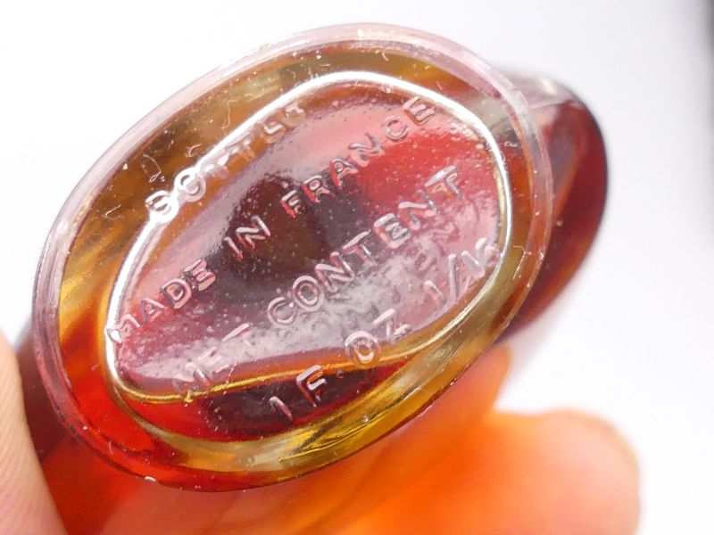 Der bauchige Glasflakon (ca. 15 - 20 ml) liegt angenehm in der Hand, und das Etikett befindet sich in ausgezeichnetem Zustand. Er ist VOLL und besitzt noch seine originale Versiegelung, was ihn zu einem besonders wertvollen Sammlerstück macht. Der schlichte Kunststoff-Drehverschluss ist typisch für die späte Vintage-Ära. Dieses intakte, versiegelte Stück ist ein seltenes Schaufenster in die Blütezeit der französischen Duftkunst.