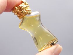 Das Juwel, eine Miniatur "Shocking You Parfum-Bijou Botticelliana"! Hier liegt das Herzstück der Kollektion: Eine extrem seltene, noch vollständig gefüllte Miniatur. Der Flakon ist in einem kunstvollen vergoldeten Podest eingefasst. Der schwere Schraubverschluss mit Öse für eine Halskette ist ebenfalls vergoldet.
