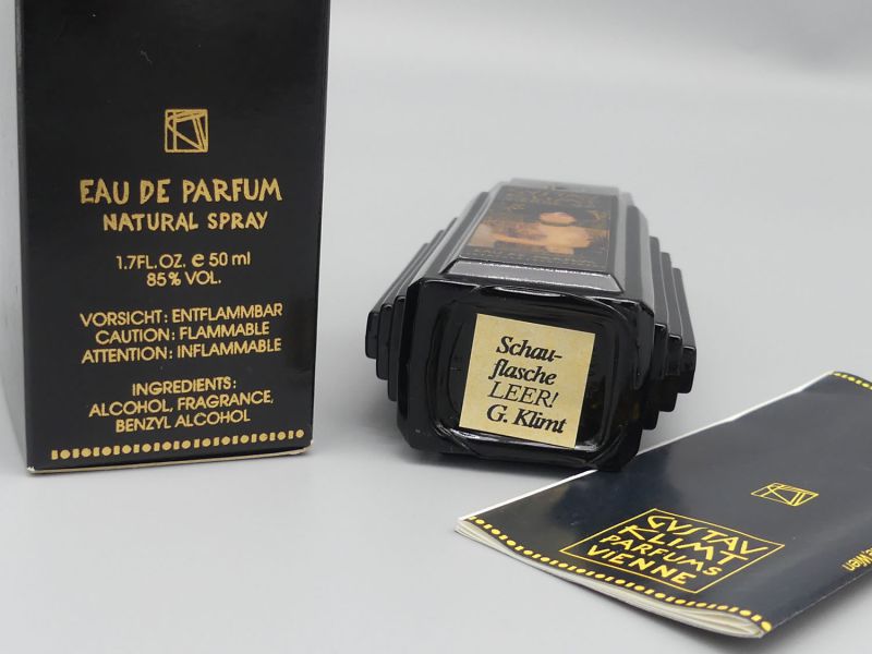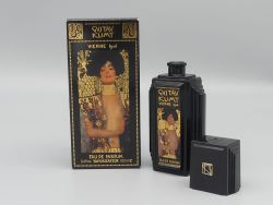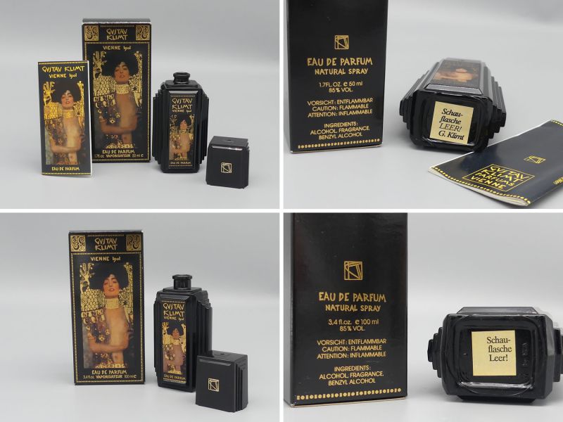 Dieses exklusive Set besteht aus drei dekorativen Factice / Dummy Flaschen der Marke Gustav Klimt Parfums und ist eine Hommage an die glanzvolle Ära der Wiener Moderne. Die Sammlung umfasst zwei 50ml Flakons und eine imposante 100ml Flasche die Mitte der 1990er Jahre in Österreich als Teil einer limitierten Kunstserie produziert wurden. Enthalten sind die heute seltenen Vintage Objekte der Linien Klimt pour Homme sowie Vienne 1901 jeweils in ihrer prachtvoll gestalteten Originalverpackung. Die Flaschen selbst sind leer und dienten ursprünglich als hochwertige Ausstellungsstücke für den Fachhandel.