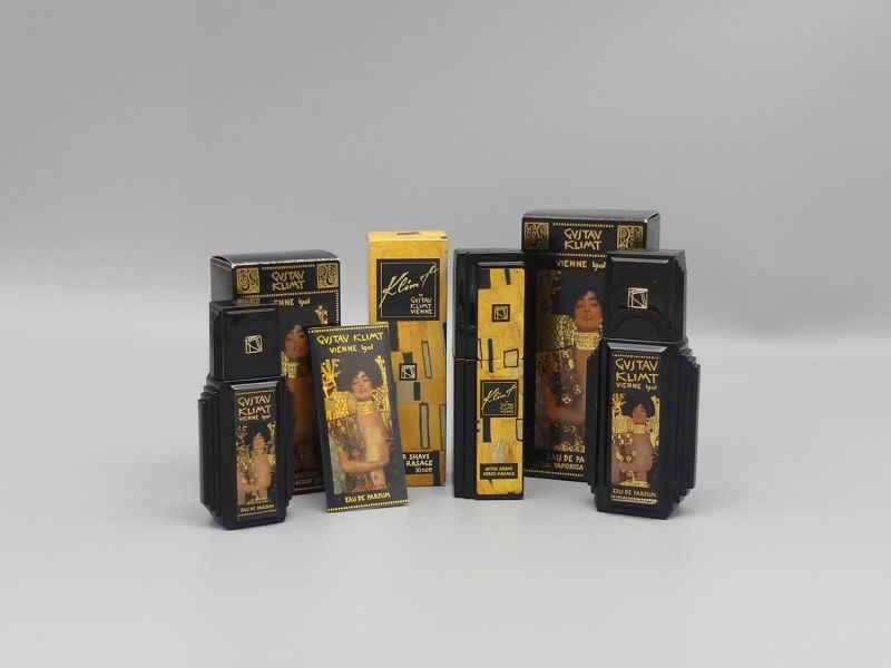 Ein besonderes Highlight sind die Motive auf den Flaschen und den Verpackungen welche die unverwechselbare Handschrift von Gustav Klimt tragen. Die Verpackungen zeigen ikonische Ausschnitte aus Klimts goldener Periode wie etwa Details aus dem berühmten Beethovenfries oder die Abbildung des Gemäldes Judith I von Gustav Klimt 1901