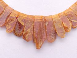 Diese handgefertigte Dekolleté-Halskette aus naturbelassenem Bernstein ist ein ausdrucksstarkes Collier, das perfekt dazu geschaffen ist, die Halspartie und das Dekolleté zu betonen. Jedes einzelne Plättchen wurde bewusst unpoliert belassen, um die authentische, rohe Schönheit des fossilen Harzes in warmen, vielschichtigen Bernsteintönen zur Geltung zu bringen und eine natürliche, lebendige Textur zu schaffen.