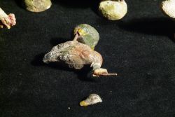 Vermutlich Tipple Topple, Elastolin, 6 Stk. Bauernhof-Figuren aus Masse, um 1950; bestehend aus 3x Hühner, 1x Hahn und 2 Enten; dem Alter entsprechende Gebrauchsspuren; teilweise brüchig und rissig; eine Ente am Kopf stark beschädigt; Maße: von 4 - 6,5 cm Hoch