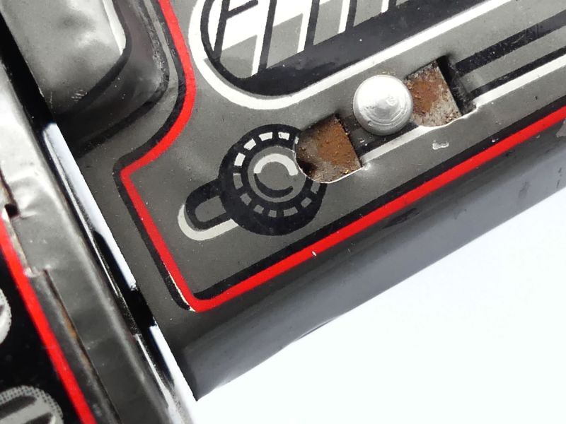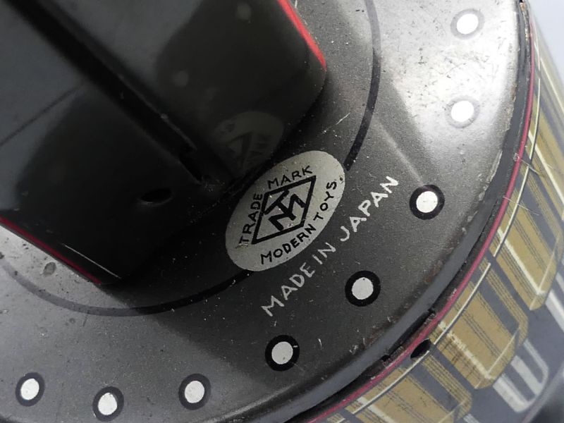 Das Objekt besticht durch seine detaillierte und farbenfrohe Lithografie die den technischen Charme der 1950er Jahre perfekt widerspiegelt und die Meisterschaft japanischer Handwerkskunst in der Nachkriegszeit dokumentiert. Es handelt sich um ein ehrliches und bespieltes Originalstück das über eine natürliche Patina sowie einige kleine Dellen verfügt, die von der jahrzehntelangen Geschichte dieses Objekts zeugen und seinen Vintage Charakter unterstreichen.