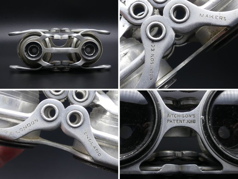Dieses außergewöhnliche Fernglas „Aitchison’s Patent 1016“ stammt aus England und entstammt einer Ära, als Optik noch Handwerk und Design vereinte. Aitchison, der für seine neuartigen Pocket Binokulars bekannt war, meldete das Patent an und schuf ein Fernglas, das durch seine kompakte Bauweise und eine mechanisch elegante Ausfahr-Mechanik besticht. Es ist aus Aluminium gefertigt, was es ungewöhnlich leicht und gleichzeitig rostfrei macht und damit ideal für Reisen, Theater, Oper oder als Sammlerstück. Das Fernglas lässt sich durch eine skurrile, charmante Mechanik ausfahren und erinnert stilistisch an Steampunk-Design, jede Schraube und jeder Hebel erzählt von handwerklicher Präzision und viktorianischer Ingenieurskunst. Auf dem Gehäuse prangt die Markierung „Aitchison’s Patent 1016 – London, England – Aitchison & Co Makers“, was dem Objekt Authentizität und historischen Wert verleiht. In einer neueren Publikation wird dieses Modell explizit als seltener Klassiker erwähnt und für Sammler antiker optischer Geräte hochgeschätzt.